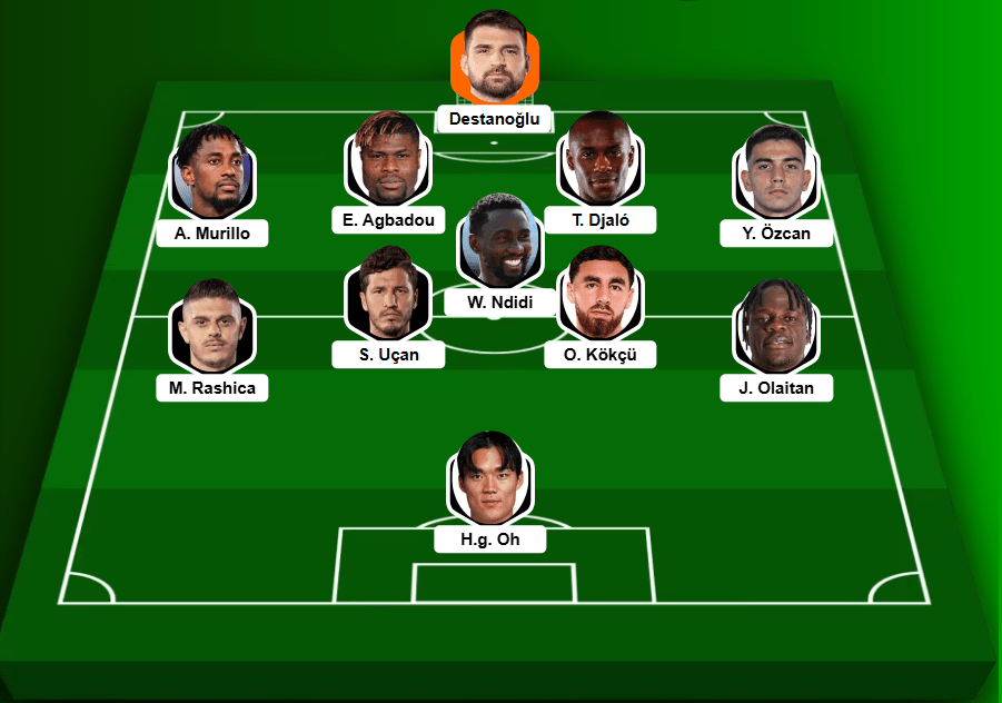 - Defans: Murillo, Agbadou, Djalo, Yasin