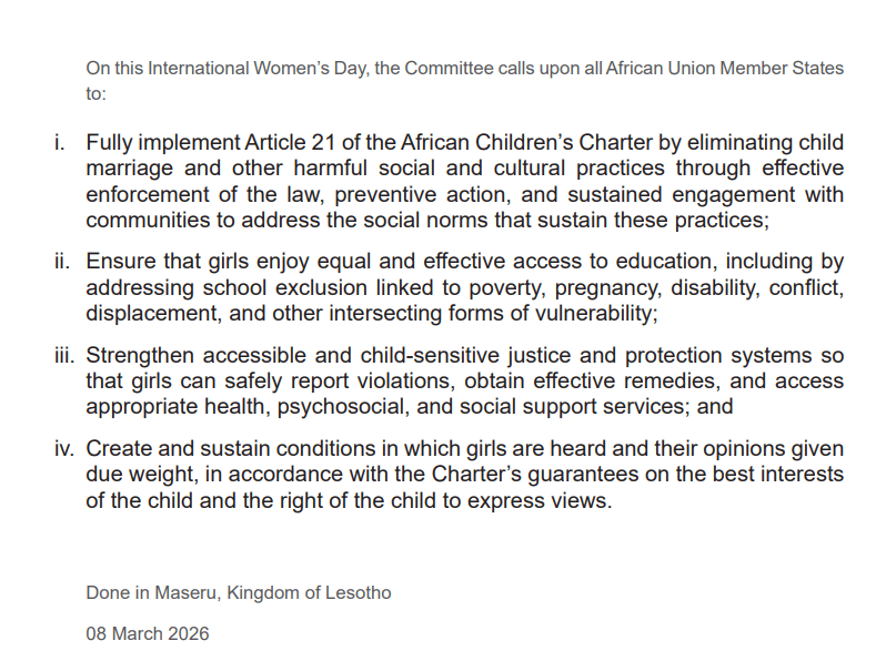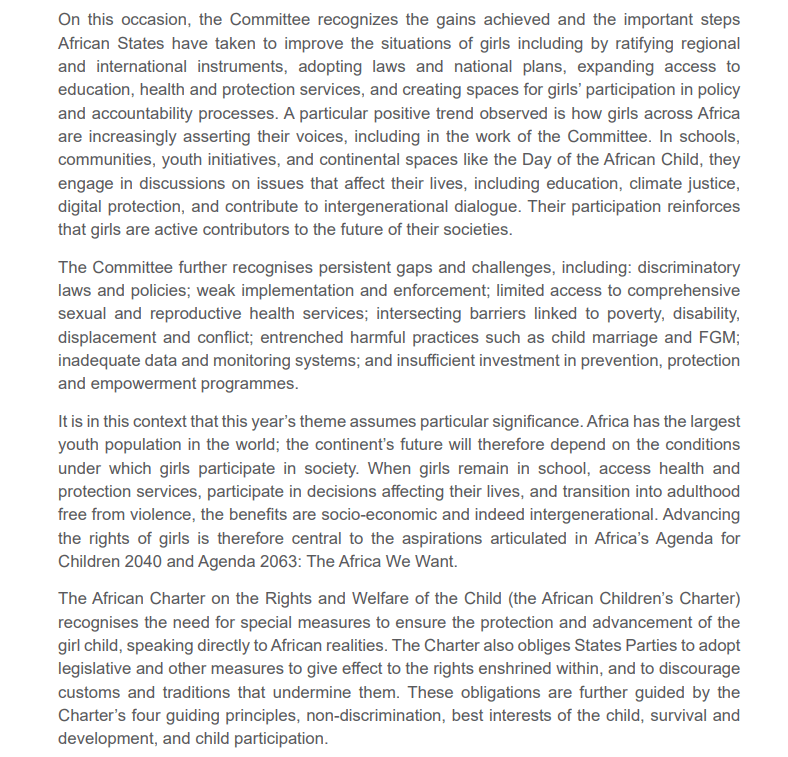 La Declaración sobre los Derechos del Niño de 2026 del ACERWC representa un avance significativo en la protección y promoción de los derechos infantiles en África. Su fortaleza radica en su enfoque integral, que combina principios universales con sensibilidad al contexto africano, reconociendo desafíos culturales, sociales y económicos específicos.