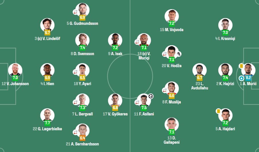 Tüm gol pozisyonlarında Asllani ve Muriqi; ya kafayla ya da yerde bağlantılarla aktif rol oynuyor. Bu sayede merkezden dışa doğru oyun akışı sağlanıyor.