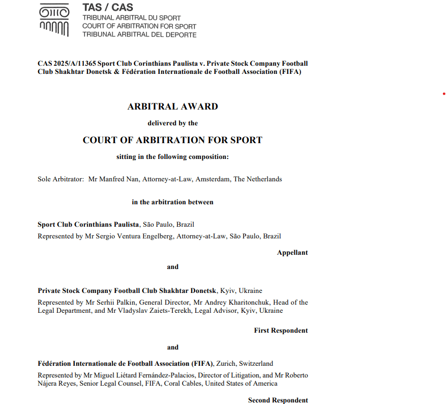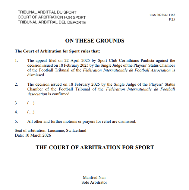 CAS, Corinthians’ın borcu açıkça kabul ettiğini tespit etmiştir.