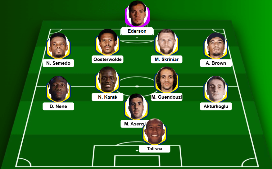 Fenerbahçe adına Ederson’un uzun pasları ve oyun kurulumundaki rolü belirleyici olacaktır; yanı sıra Asensio ve sakatlıktan dönen Talisca ikilisinin performası zaten kilit rol taşıyor.
