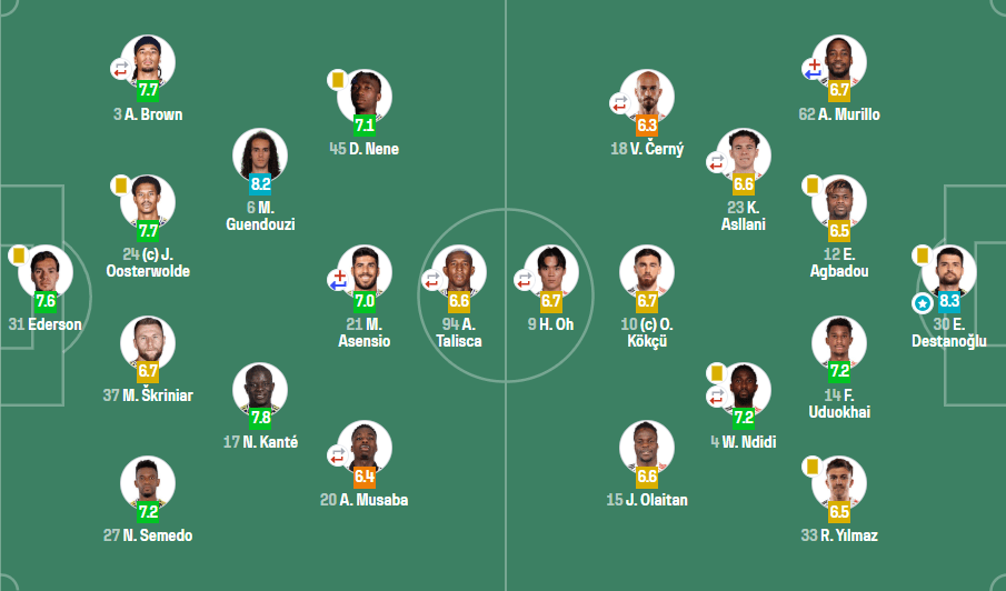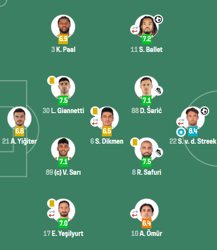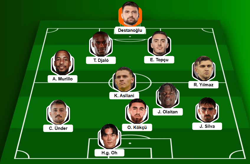 Zaten hücumda da roller oturmuş değil.. Mesela N’Didi 6, Asllani 8, Orkun 8 oynuyor diyelim — Asllani rolünü halen tam anlamıyla bulamamış bir oyuncu gibi.