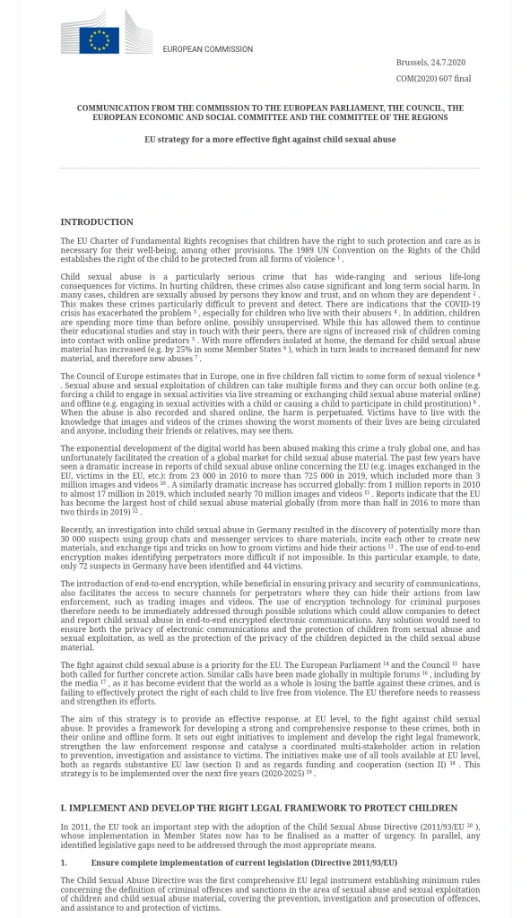 Bu qanun layihəsi; Bu, 2020-ci ilin iyul ayında elan edilmiş Uşaqların Cinsi İstismarına Qarşı Daha Səmərəli Mübarizə üzrə Avropa İttifaqı strategiyasının nəticəsidir ki, bu strategiya həm oflayn, həm də onlayn olaraq uşaqların cinsi istismarının artan təhlükəsinə qarşı mübarizənin, təhqiqatın və qurbanlara yardımın təkmilləşdirilməsi yolu ilə hərtərəfli cavabı müəyyən edir.