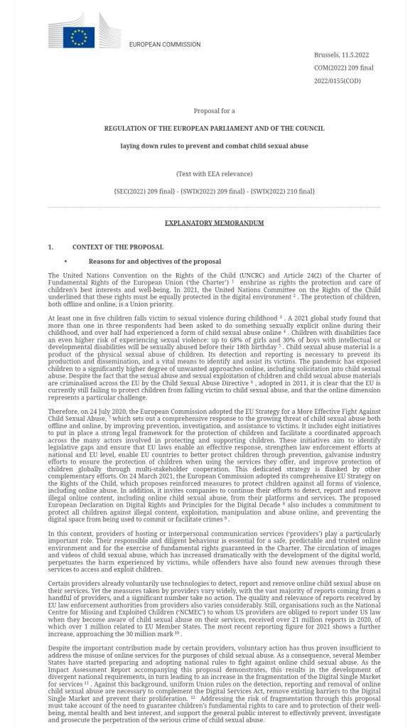 Avropa İttifaqı Şurasındakı səfirlər; Uşaqların cinsi istismarı materialları ilə mübarizə üçün Aİ-nin çətir tənzimləməsi ilə bağlı ümumi mövqeyi dəstəkləyib-dəstəkləməyəcəyinə qərar vermək üçün səsvermə planlaşdırılırdı, lakin; Almaniya, Avstriya, Polşa, Hollandiya və Çexiya da daxil olmaqla bir çox intizamlı Avropa İttifaqı ölkələri kibertəhlükəsizlik və məxfiliklə bağlı narahatlıqlar səbəbindən qanuna bitərəf qalıb və ya ona qarşı çıxıb, müvafiq səsverməni təxirə salıb.